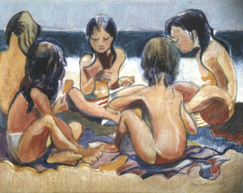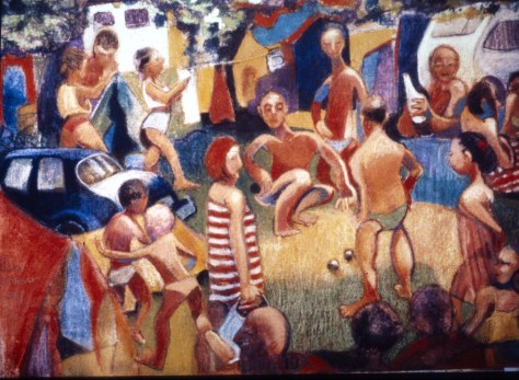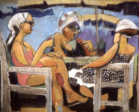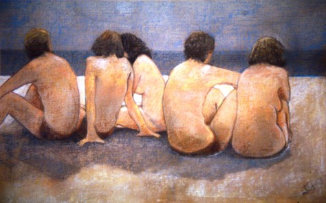 These are old pictures, mainly in pastel, though in some I used mixed media, pastel and egg tempera. They are mostly sold – apart from the backs study, which was one of the first pastel pictures I ever made and which was mistakenly based on unprimed loose linen. This meant that whenever it was moved, pastel fell off. So now it lives behind glass, high on the wall of my study where it can’t be moved.