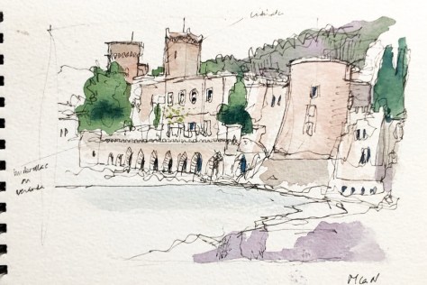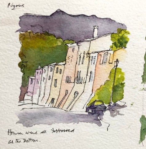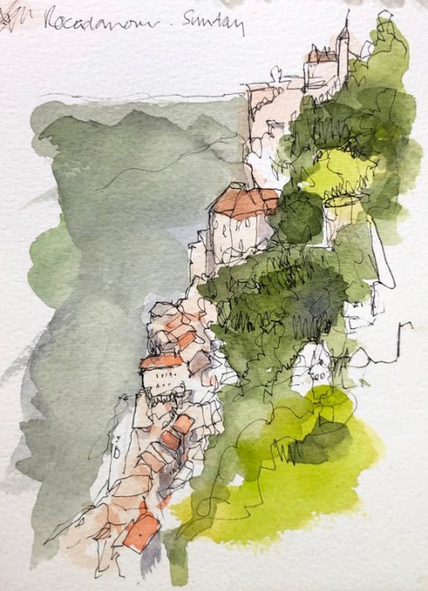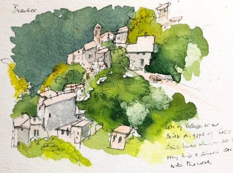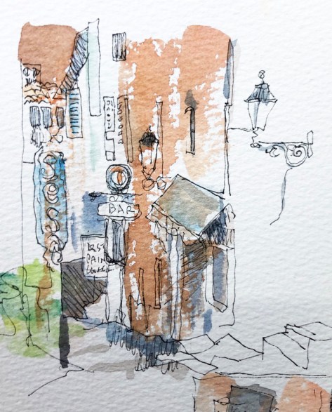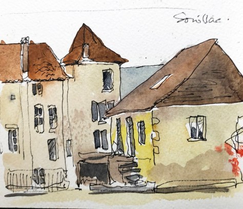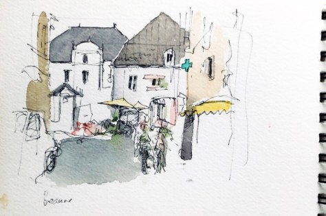 I have hundreds of small pen and watercolour sketches in upwards of 30-40 sketch books. Here are just a few from France. Any of these could be developed into full pictures if anybody wished.