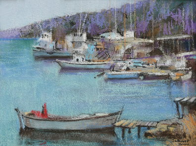 I’m not much of a plain-air painter, though I always carry a sketch book, pens and a small watercolour box when travelling. Setting up an easel with all the paraphernalia of paints, brushes, media, etc., doesn’t suit me – although I have done this from time to time. I do use a camera a lot – not to copy from, but to remind me of a scene or an event.
